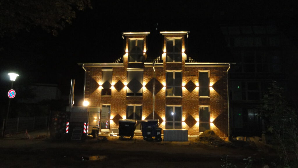 Bauweise: Das Gebäude ist aus Kalksandstein-Mauerwerk erstellt worden und der Keller besteht aus einer „weißen Wanne“ wegen des Grundwassers.